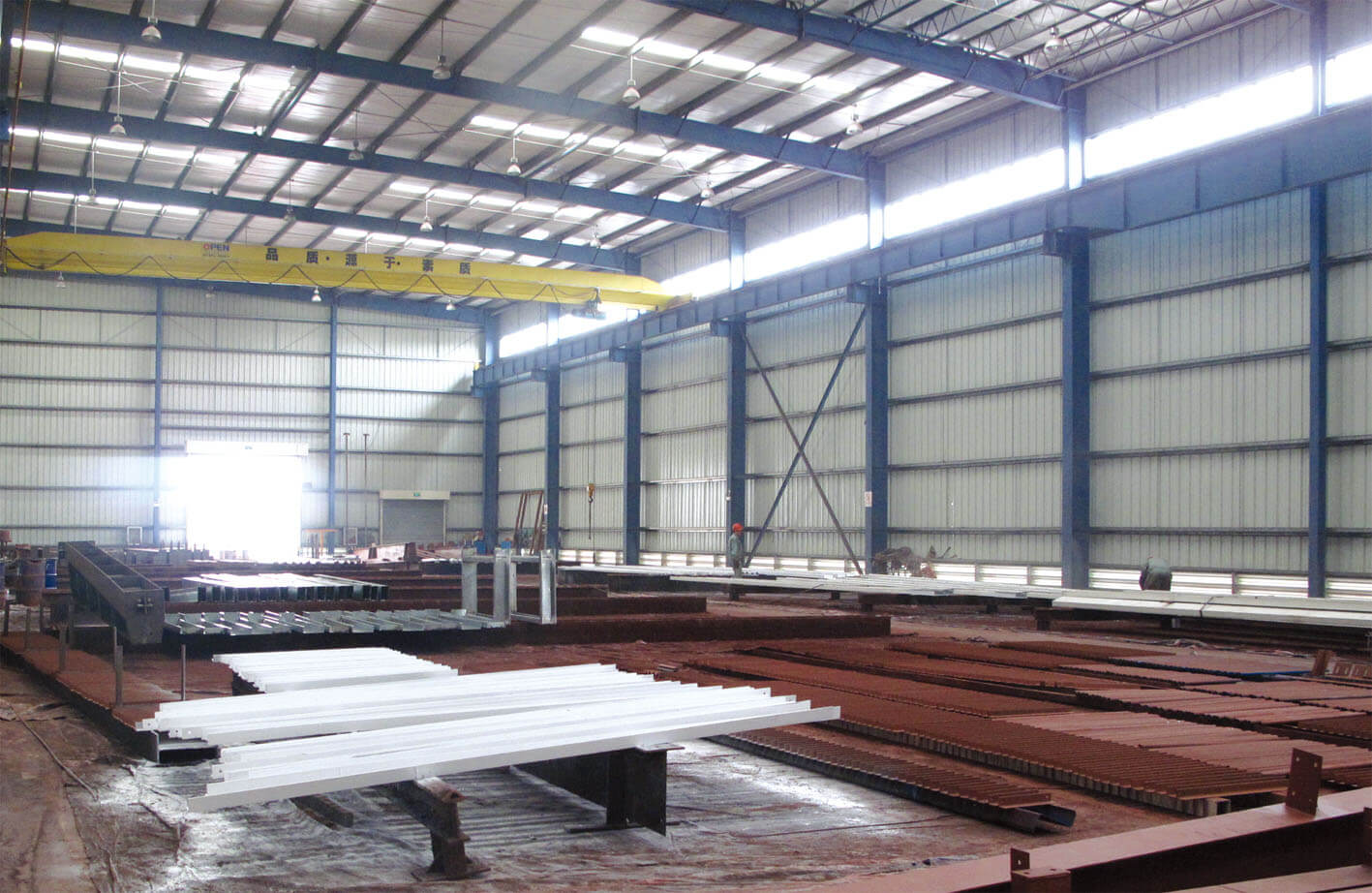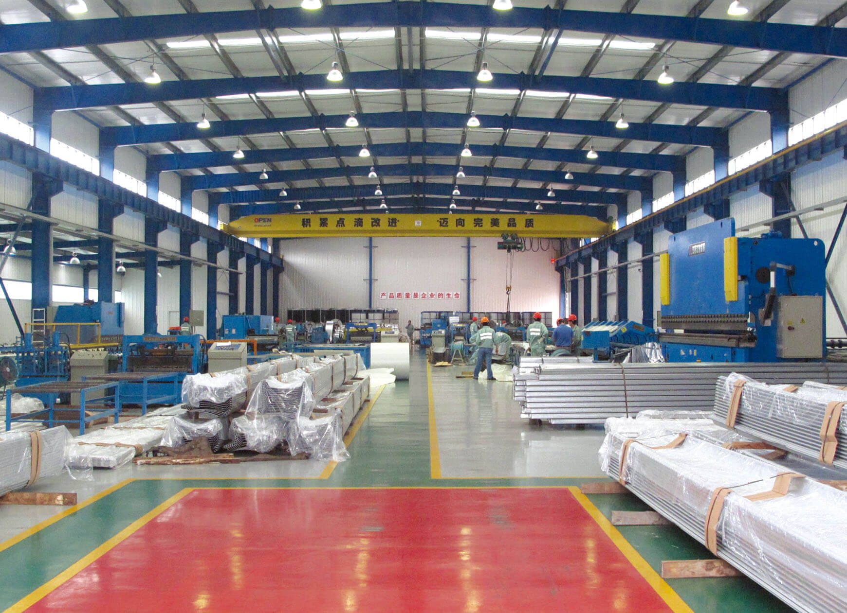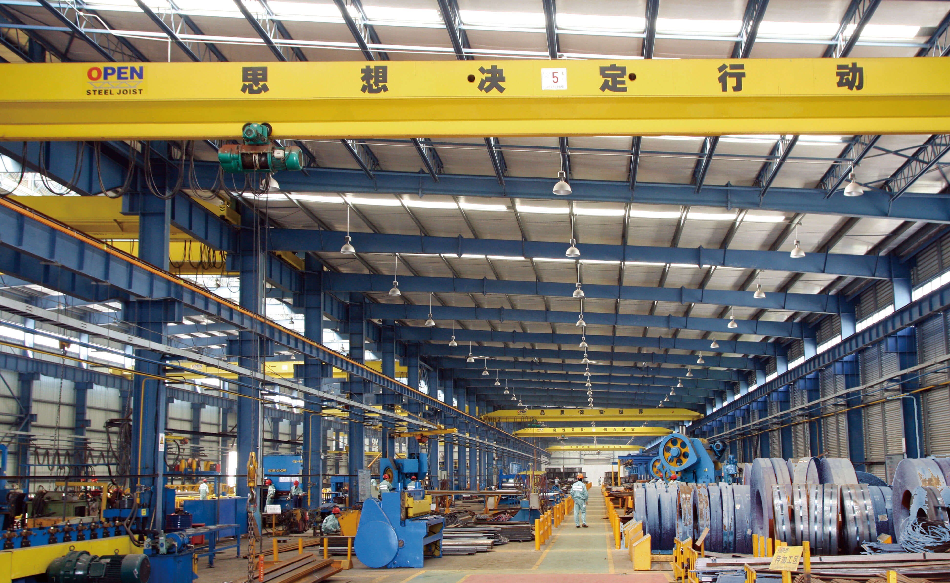 Fábrica de Jinshan do Grupo Open, ocupa mais de 4 hectares, as instala??es incluem um espa?o de fábrica de aproximadamente 20,000 metros quadrados. Possui a capacidade de produ??o de 60,000 toneladas de estruturas metálicas e 5 milh?es metros quadrados do sistema de fechamento, é uma fábrica moderna de estrutura metálica.