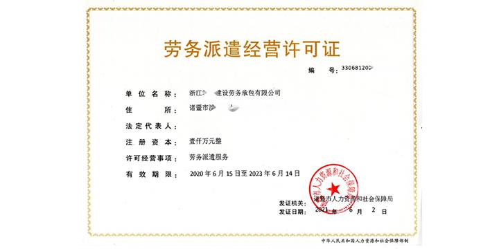 勞務派遣許可證案例以及經(jīng)營范圍分享:注冊資金1000萬元整,許可證有效期3年。經(jīng)營范圍:承接施工總承包和專業(yè)承包,建筑工程勞務分包;勞務派遣;人力搬運裝卸服務;綠化服務;餐飲管理服務;保潔服務;投資咨詢服務;房屋出租